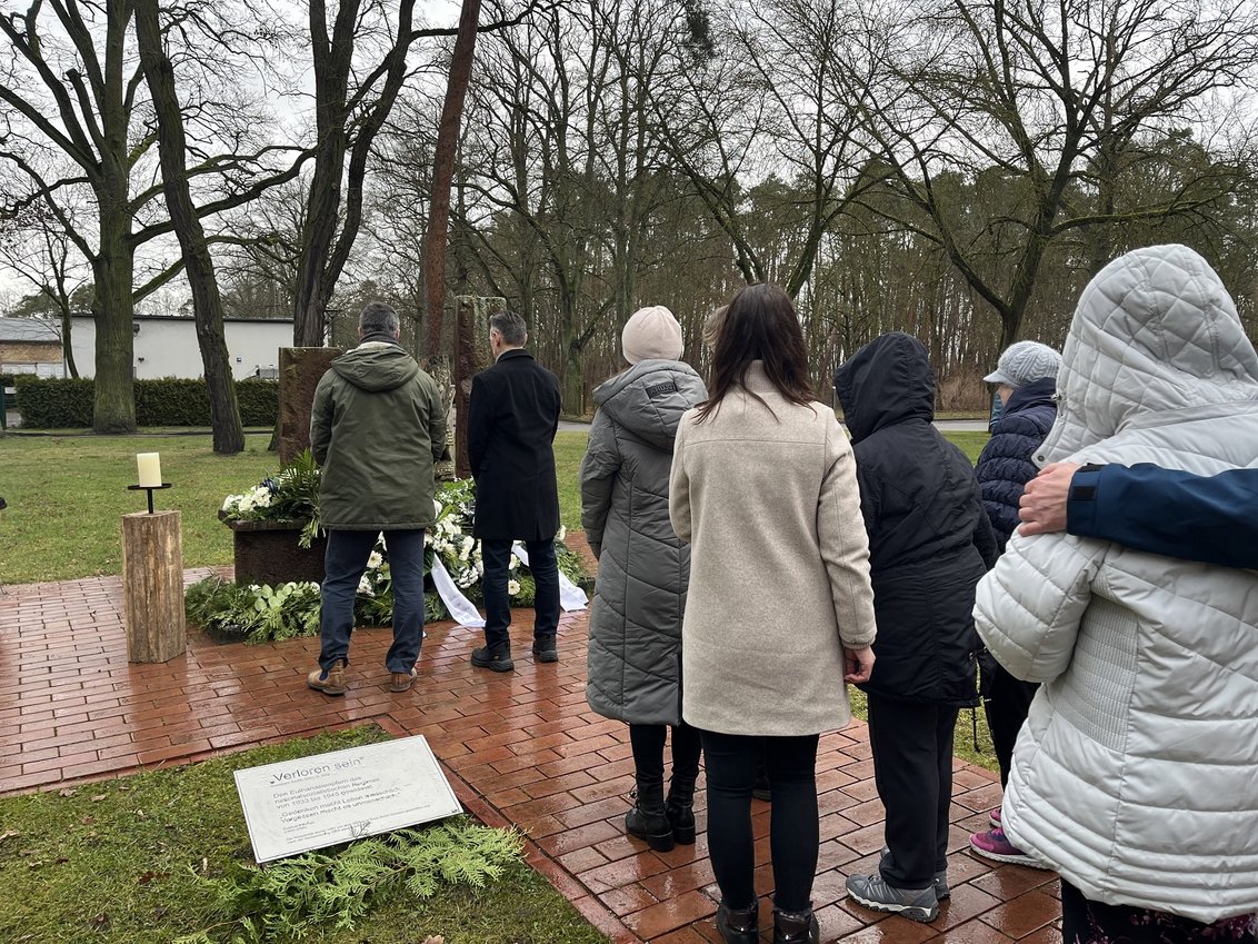 Am Holocaust-Gedenktag erinnerten über 50 Menschen im AMEOS Klinikum Ueckermünde an die Patientinnen und Patienten, die Opfer der nationalsozialistischen Ausgrenzungs- und Vernichtungssysteme geworden sind. Am Mahnmal „Verloren sein“ legten Abgeordnete der Stadt Ueckermünde und Vertreter der Behindertenverbände sowie zahlreiche Mitarbeitende und Bewohner der AMEOS Einrichtungen Kränze und Blumen nieder.