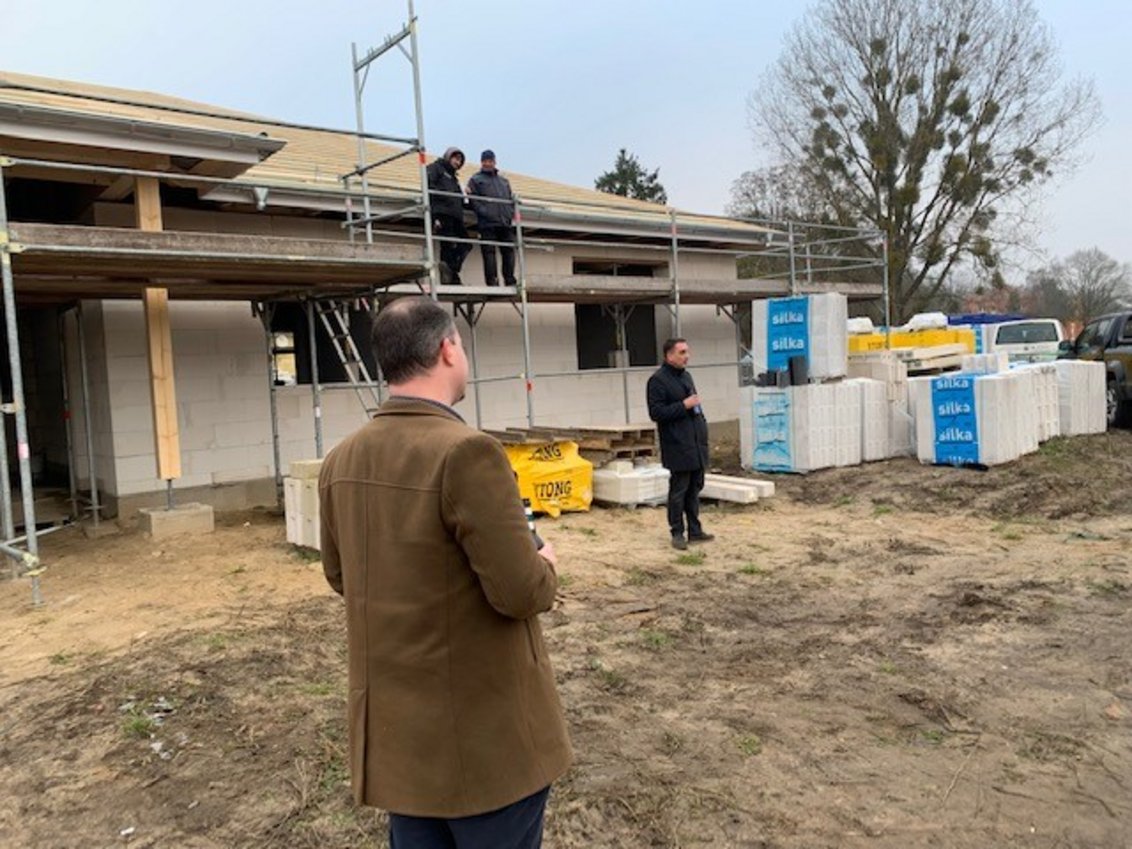 Die moderne Wohneinrichtung, bestehend aus 6 Häusern, bietet künftig 50 Menschen mit geistigen und körperlichen Beeinträchtigungen ein neues Zuhause am vertrauten Ort. Die Bewohnerinnen und Bewohner leben in kleinen Wohngemeinschaften zusammen – angepasst an ihren individuellen Unterstützungsbedarf. Geplant sind großzügige Einzel- und Zweibettzimmer, gemeinschaftliche Aufenthaltsräume, einladende Terrassen sowie moderne Arbeits- und Funktionsräume für das Pflegeteam.