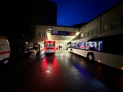 Bildunterschrift: Eintreffen der Bewohnerinnen und Bewohner des evakuierten Seniorenheims am AMEOS Klinikum St. Elisabeth Neuburg