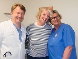 Foto: Marco Biallek (Leitender Oberarzt der Klinik für Kardiologie), Patientin Maike Garken und Pflegefachkraft Manuela Schöning.