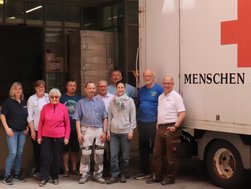 Mitglieder des Fördervereins humanitäre Hilfe BRK und Mitarbeitenden des AMEOS Klinikum St. Elisabeth Neuburg, haben gemeinsam die Spenden an einem Samstag gesichtet und für den Transport verladen.
