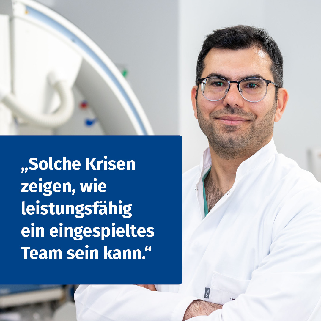 Die Zusammenarbeit war von Anfang an von großem Zusammenhalt geprägt. „Wir steckten gemeinsam in der Krise, die niemand von uns verursacht hatte und trotzdem haben alle ihren Beitrag geleistet, das Beste aus der Situation zu machen. Das hat uns geholfen, auch in stressigen Momenten, ruhig und fokussiert zu bleiben“, betonen beide Ärzte. „Wir haben zusätzlich darauf geachtet, dass niemand die Last alleine tragen muss“, erklärt Dr. med. Andreas Brügge.