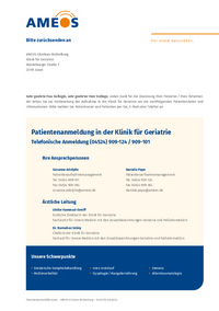 Bitte zurücksenden an AMEOS Klinikum Middelburg Klinik für Geriatrie Middelburger Straße 1 23701 Süsel Sehr geehrte Frau Kollegin, sehr geehrter Herr Kollege, vielen Dank für die Zuweisung Ihrer…