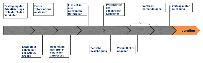 Die erfolgreiche Privatisierung mehrerer Einrichtungen in den vergangenen Jahren bescheinigt der AMEOS Gruppe, dass es ihr gelingt, die erworbenen Einrichtungen Überlebensfähig zu gestalten sowie diese wirtschaftliche wie medizinisch prosperieren zu lassen. AMEOS legt dabei Wert darauf, dass, unter Einbezug der Mitarbeiter und verantwortlichen Gremien, die bestehenden Potentiale der Häuser optimal ausgeschöpft werden