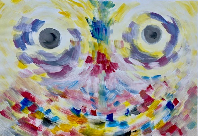 Das Bild wurde von einer Patientin mit Migrationshintergrund gemalt, die erst seit kurzer Zeit in Deutschland lebt und deren Deutschkenntnisse noch eingeschränkt sind. Sie malt in der Kunsttherapie leidenschaftlich gerne Bilder und vergisst dabei Raum und Zeit. Gerade das Malen ermöglicht es ihr ihre Gefühle und Gedanken - unabhängig bestehender Sprachbarrieren - auszudrücken.